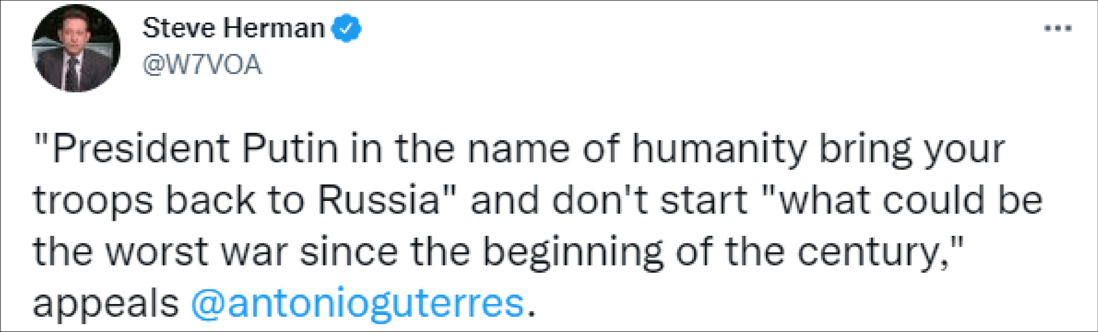 “不要发动本世纪以来最糟糕的战争,很难预测会有多少人因此死亡、流离失所、对未来失去希望。这场战争毫无意义,它违反了违反了(联合国)宪章的原则。”