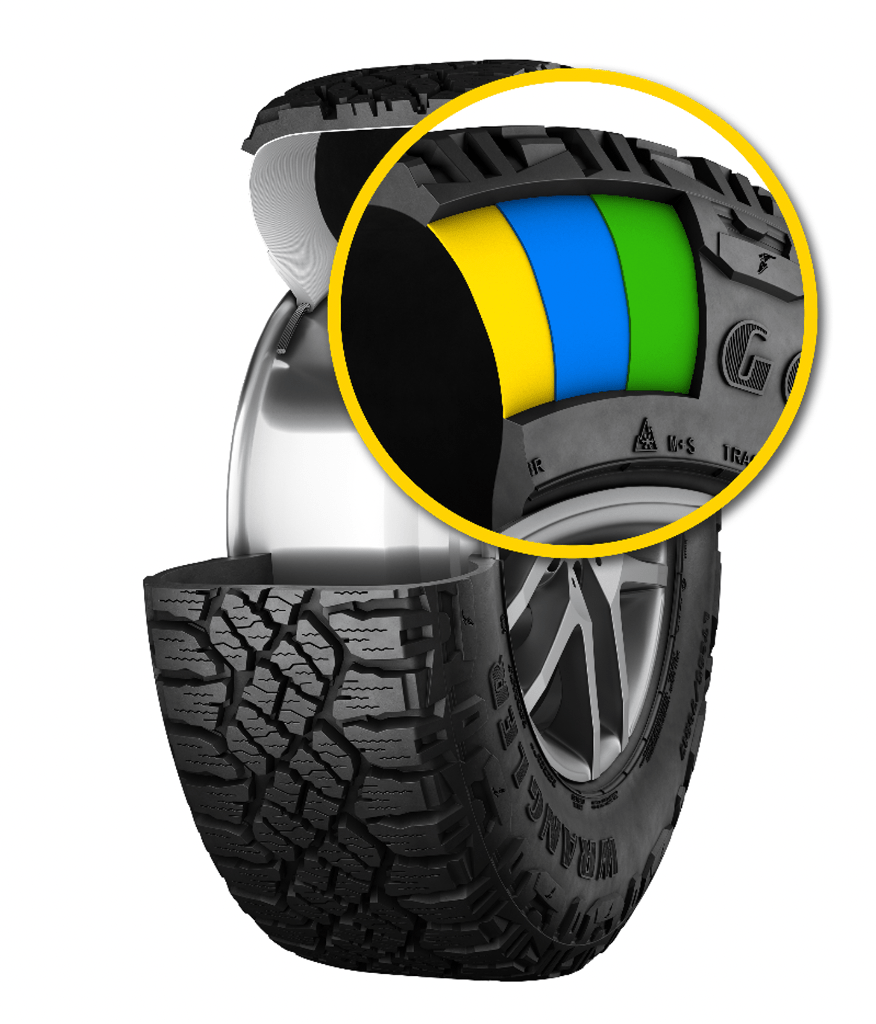 据了解,固特异牧马人韧行闯客II代采用创新技术,胎侧三层遁甲设计增强胎侧强度;使用创新的胎面胶料,增加了轮胎的耐磨性和牢固度;采用自洁式花纹设计,相比普通越野胎的沟槽更深,可以实现快速排除淤泥的同时,还能够有效增加胎面与路面之间的摩擦力;在DuraEdge技术的加持下,实现了坚固的胎面和胎肩设计,在胎肩和胎面处通过采用贯穿一致坚固的花纹,延长了轮胎的使用寿命。
