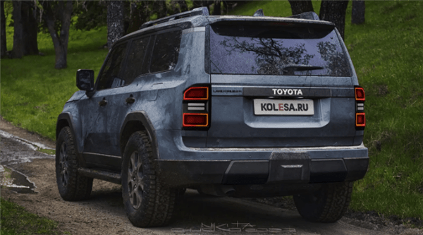 来到尾部,两侧的垂直尾灯,由多个多边形元素组成,取消了雷克萨斯GX的一体式式大灯,由多个多边形元素组成,保险杠下部是厚实的黑色包围,单一的排气尾管隐藏在左下方。