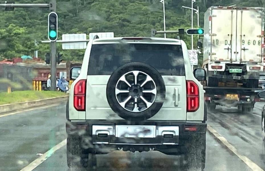 尾部造型就是越野SUV经典设计了,配备了外挂式备胎,两侧配备矩阵式回形后尾灯,内部细节处理精致,点亮后辨识度较高。