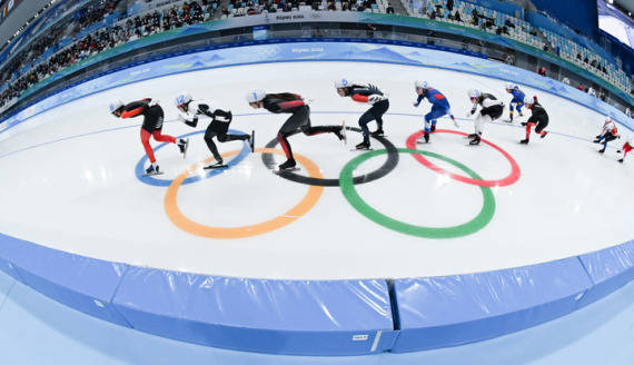 2月19日,北京冬奥会速度滑冰女子集体出发半决赛在国家速滑馆“冰丝带”举行。新华社记者武巍摄
